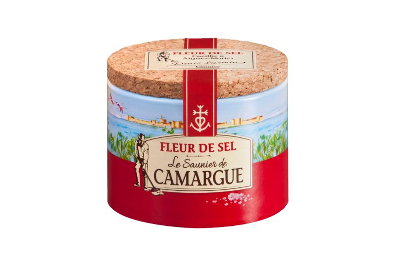地中海の海水を塩田に引き、 はじめに塩田の水面に現れた結晶を 伝統に習って手作業で採取しました。カマルグの中では最高品質。料理の仕上げにふりかけて味のアクセントに。